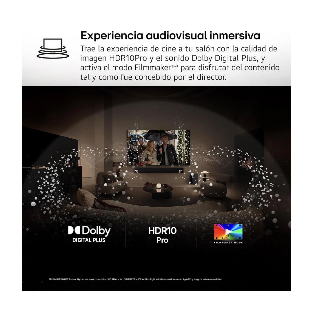 • HDR: compatible con HDR10 Pro, HLG y Filmmaker Mode, para disfrutar cine, series y deporte con un rango dinámico espectacular.